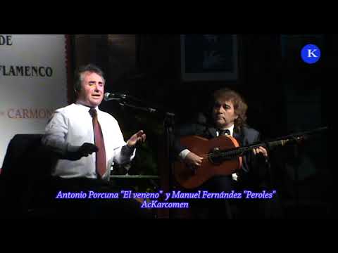 Actuación del cantaorAntonio Porcuna "El Veneno" de Adamuz , Córdoba, acompañado a la guitarra por por su Manuel Fernández “Peroles”, 1º premio del XXVII concurso nacional de cante flamenco ciudad de carmona, en el apartado general.